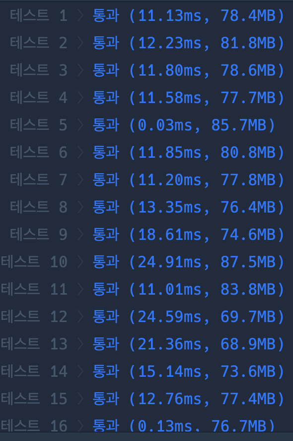 import java.util.*; class Solution { public int solution(String s) { int len = s.length(); int minLen = len; StringBuffer sb; for(int i=1; i<=len/2; i++){ sb = new StringBuffer(); int idx=0; while(idx<len){ String str = s.substring(idx,idx+i); int cnt =1; while(idx+cnt*i < len && s.substring(idx+cnt*i).indexOf(str) == 0) cnt++; sb.append(cnt !=1 ?cnt+str : str); idx += cnt*i; if(idx+i>len) { sb.append(s.substring(idx)); break; } } minLen = Math.min(minLen, sb.toString().length()); } return minLen; } }실행 결과