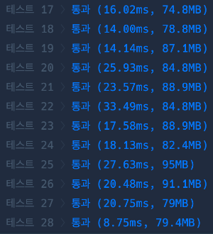 import java.util.*; class Solution { public int solution(String s) { int len = s.length(); int minLen = len; StringBuffer sb; for(int i=1; i<=len/2; i++){ sb = new StringBuffer(); int idx=0; while(idx<len){ String str = s.substring(idx,idx+i); int cnt =1; while(idx+cnt*i < len && s.substring(idx+cnt*i).indexOf(str) == 0) cnt++; sb.append(cnt !=1 ?cnt+str : str); idx += cnt*i; if(idx+i>len) { sb.append(s.substring(idx)); break; } } minLen = Math.min(minLen, sb.toString().length()); } return minLen; } }실행 결과