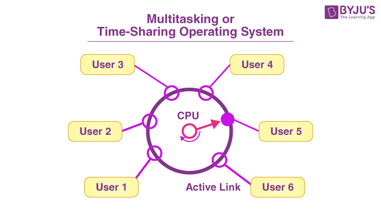 사용자가 CPU에 대해 일정 시간을 할당 받아 짧은 간격으로 번갈아 실행하는 시스템이다. 다중 프로그래밍과 비슷하지만 논리적 확장된 시스템으로 응답시간을 최소화하며 하드웨어를 보다 능률적으로 사용할 수 있다. 여러 사용자가 단말장치를 통하여 동시에 운영체제와 대화하면서 각각의 프로그램을 실행한다. 이를 통해 여러 사용자가 동시에 컴퓨터를 사용할 수 있으며, 각각의 응용 프로그램이 병렬로 실행되는 것 처럼 보이게 한다. 단, 시스템의 전체 효율은 좋아지나 개인별 사용자 입장에서는 반응 속도가 느려질 수 있다.